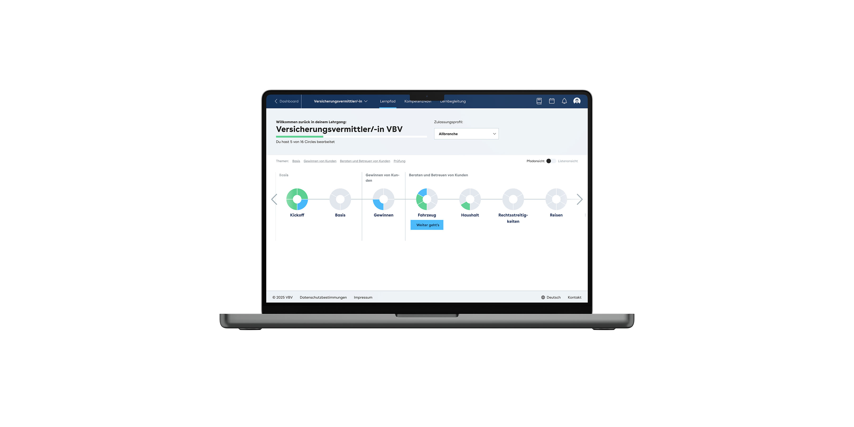 Hier bist du genau richtig, wenn du die Zulassungs- oder Rezertifizierungsprüfungen «Versicherungsvermittler/-in VBV» erreichen willst. Du kannst hier direkt die verschiedenen Prüfungsteile absolvieren oder mit dem digitalen Lernpfad darauf lernen.
